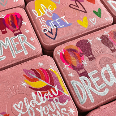Cada pieza es intervenida a mano, perfecta para fotos memorables o como regalo especial.